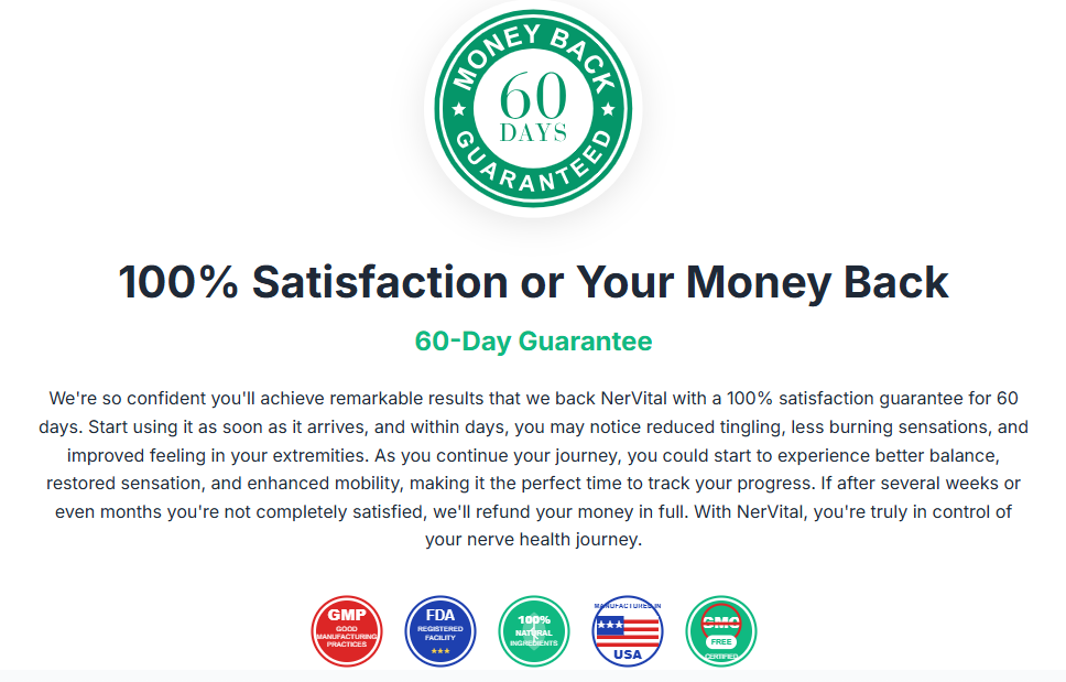 Nervital comes with a 100% satisfaction guarantee for 60 days. This means you can try the supplement risk-free and experience its effects firsthand.