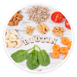 Hair keratin synthesis is stimulated by Biotin, which can also speed up follicle growth. It lessens breakage at the ends and protects your hair. It boosts the gloss of your hair, and research indicates that consuming more Biotin is beneficial for the overall hair quality, including thickness and shine. Keratin, an essential protein found in hair, skin, and nails, is improved. |