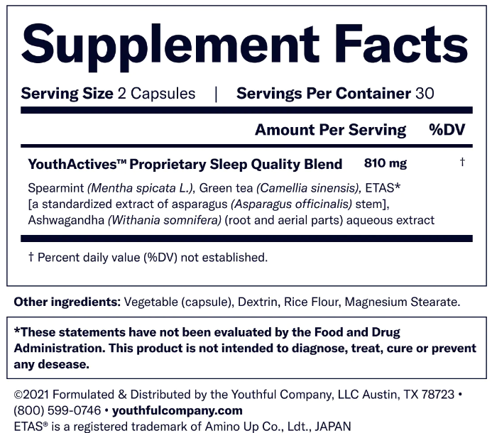 Youthful Sleep Ingredients